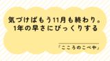 最近はぐっと冷え込むようになり、マフラーが欲しいなと感じるほどだ。朝の寒さに体が少しこわばるが、冬の始まりを感じるのも悪くない。季節の変化を肌で感じながら、今日一日をどう過ごすかを考える時間も大切だと感じる。
