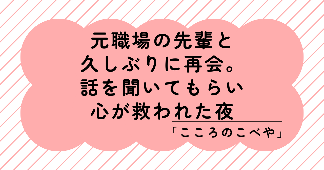先輩二人に会うのは本当に久しぶりだったが、居心地の良さにすぐ安心した。適度にツッコミも入れてもらえて、笑いながら話せる時間は心地よかった。