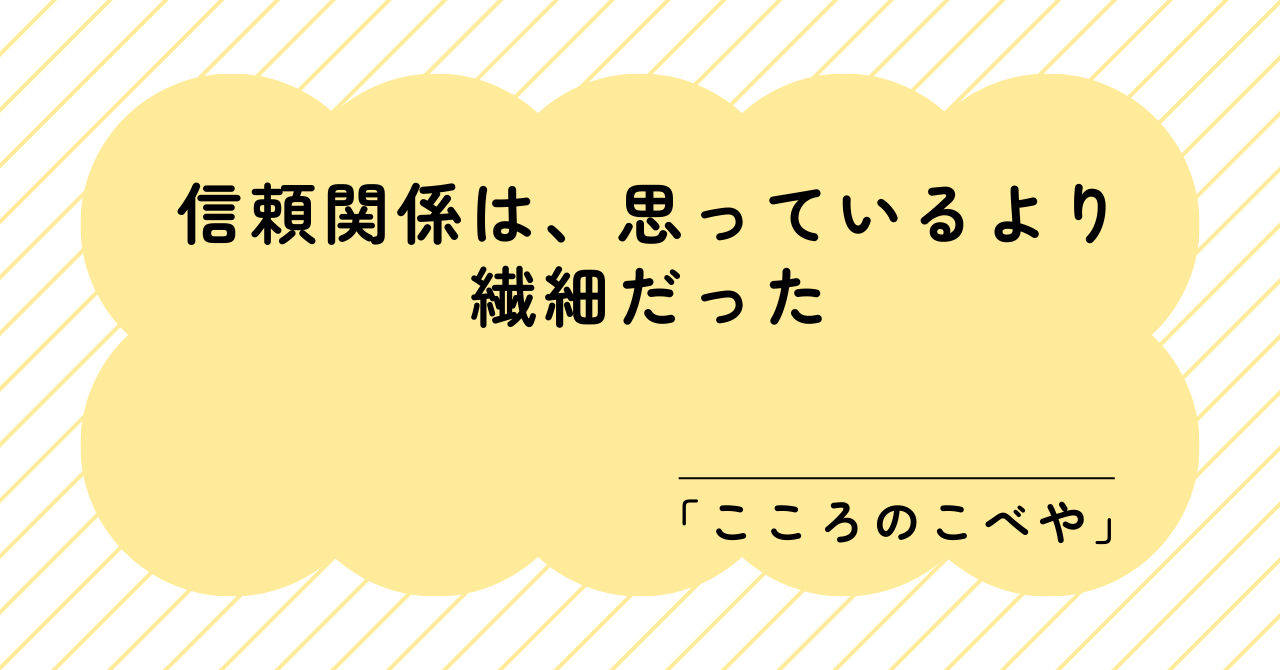 けれど最近、人との信頼関係というものは、想像以上に簡単ではないのだと強く感じるようになった。
